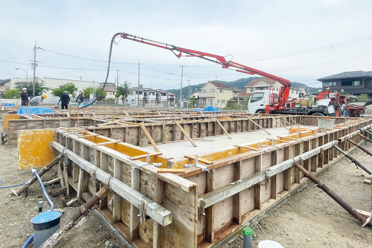 基礎工事は建物が立ってしまうと見えなくなってしまいますが、地面と建物をつなぐために欠かせない工事です。