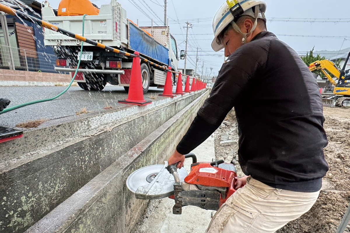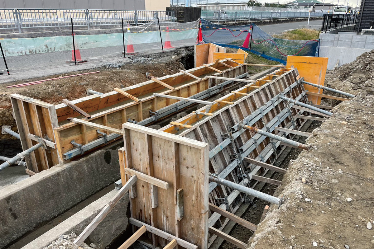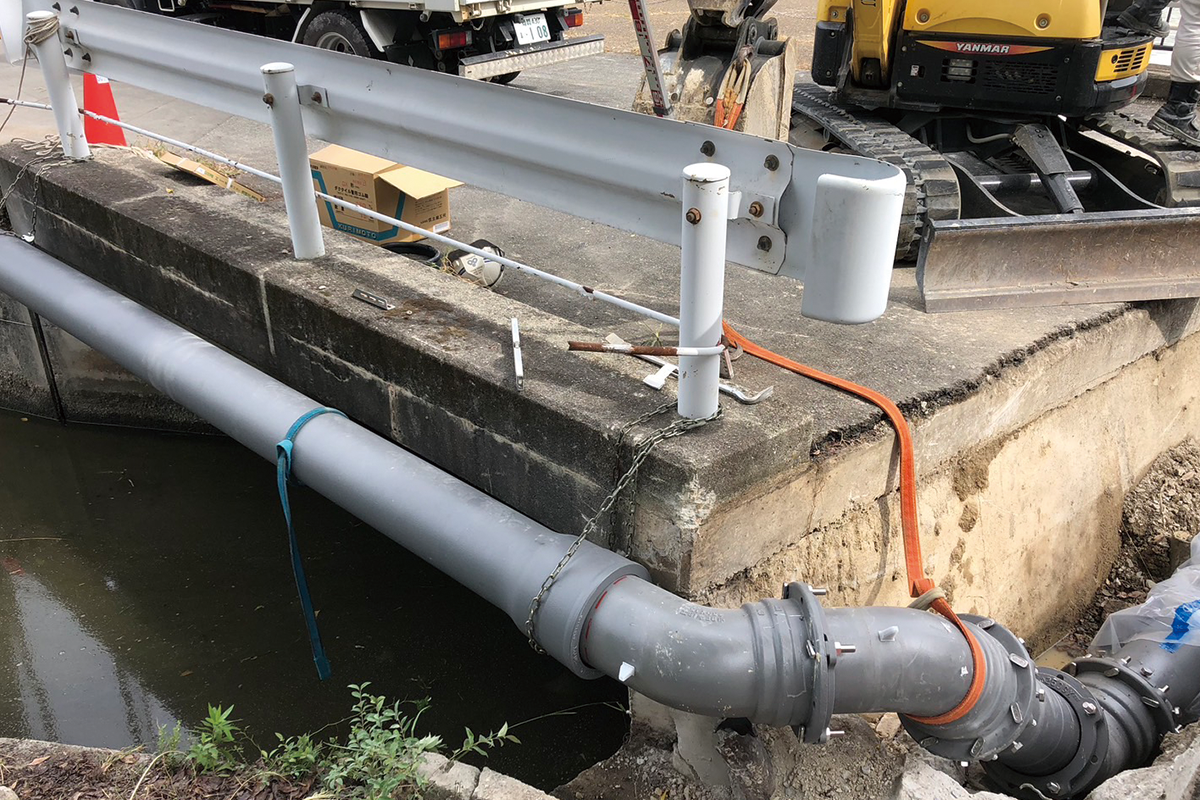 インフラ工事や道路下に敷設する配管工事を様々な重機を用いて行います。既設の上下水道施設の点検、補修、改修なども土木工事の一環です。