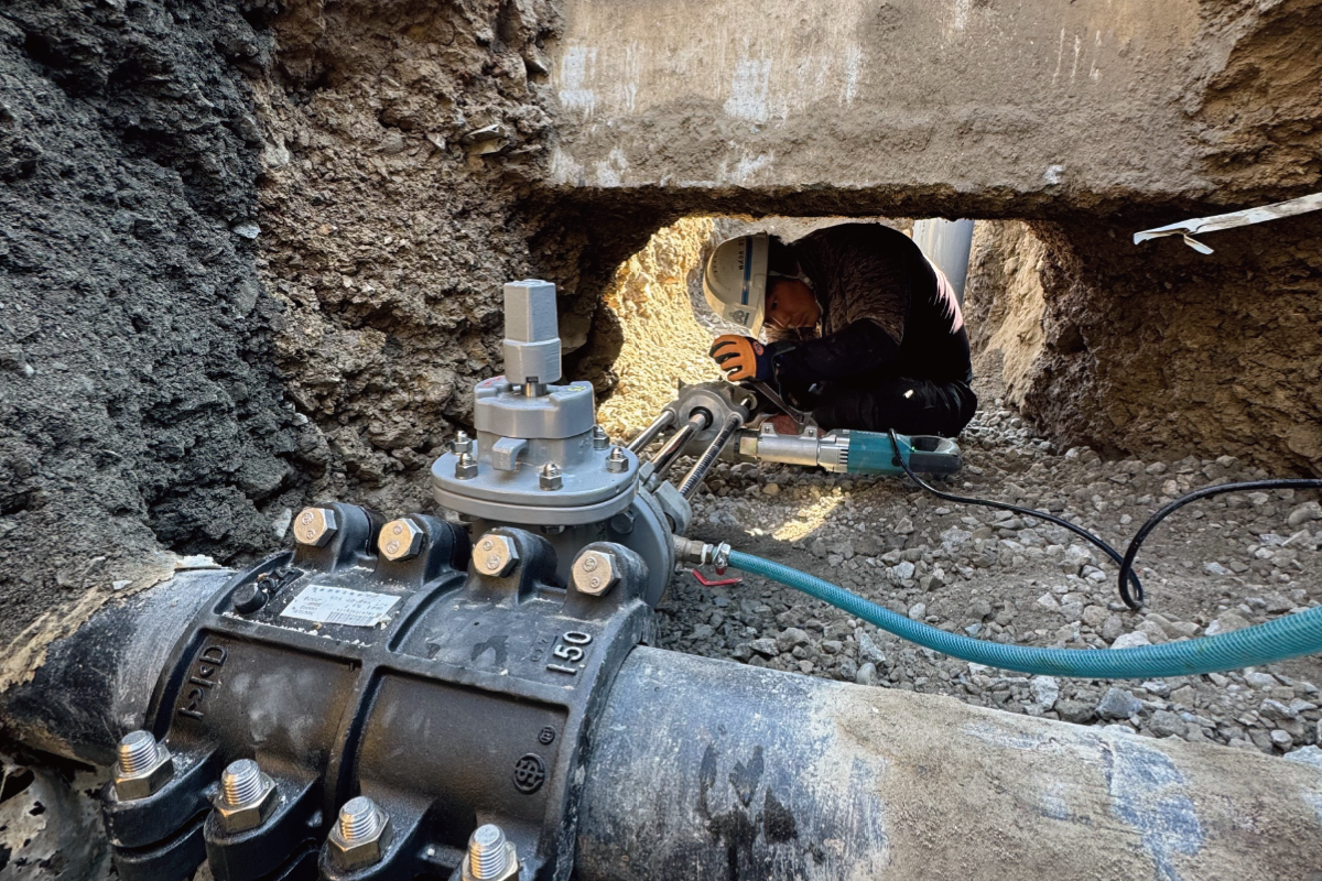 道路の下に整備された上水・下水道管の工事を行います。水道本管工事は古くなった管の取り替えや新設工事などを行います。